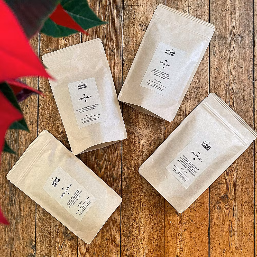 Ett värmande julte fullproppat med härliga kryddor och ett stänk av ros. Självklart ekologiskt. Kan drickas både svart och med mjölk.