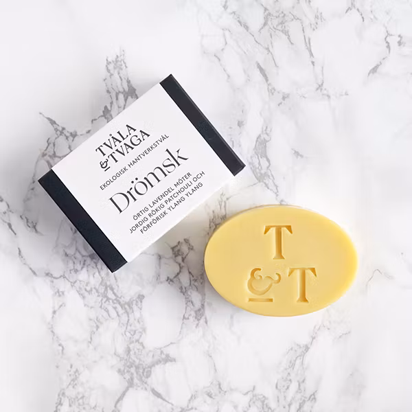 Drömsk är en riktigt krämigt återfuktande tvål med en varm, stärkande och lyxig doft du bara inte kan få nog av. Tvålen är tillverkad på en bas av kakaosmör vilket gör den mild, riktigt fet och krämigt löddrande. Kokosolja ger hårdhet och fluffigt lödder. Sheasmör ger en extra skjuts i återfuktningen. Sedan är avokadoolja, rapsolja och ricinolja med för att alla bidra med olika hudvårdande egenskaper. Drömsk innehåller som överfettning macadamianötsolja som är otroligt närande för huden och gör tvålens lödder extra återfuktande. Doften är förtrollande, riktigt drömsk, och består av eterisk lavendel, eterisk patchouli och eterisk ylang ylang. Frisk örtighet gifter sig med tung sötma som vilar tryggt i något mysigt rökigt.